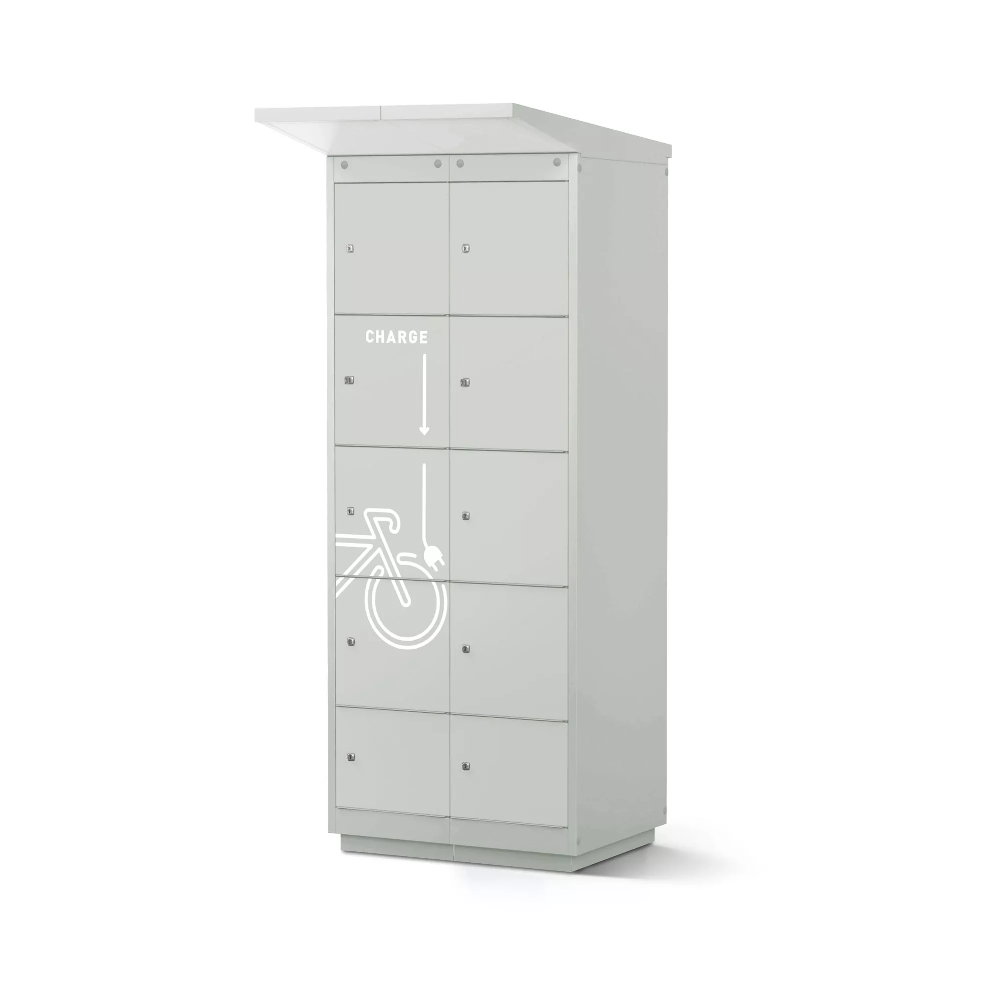 La borne de recharge pour vélos électriques est proposée en plusieurs teintes. Le compartiment de service est équipé en standard d'une serrure cylindrique. Une clé principale pour les ouvertures d'urgence est fournie avec la livraison, ainsi qu’un jeu d'autocollants de traçage à apposer soi-même.