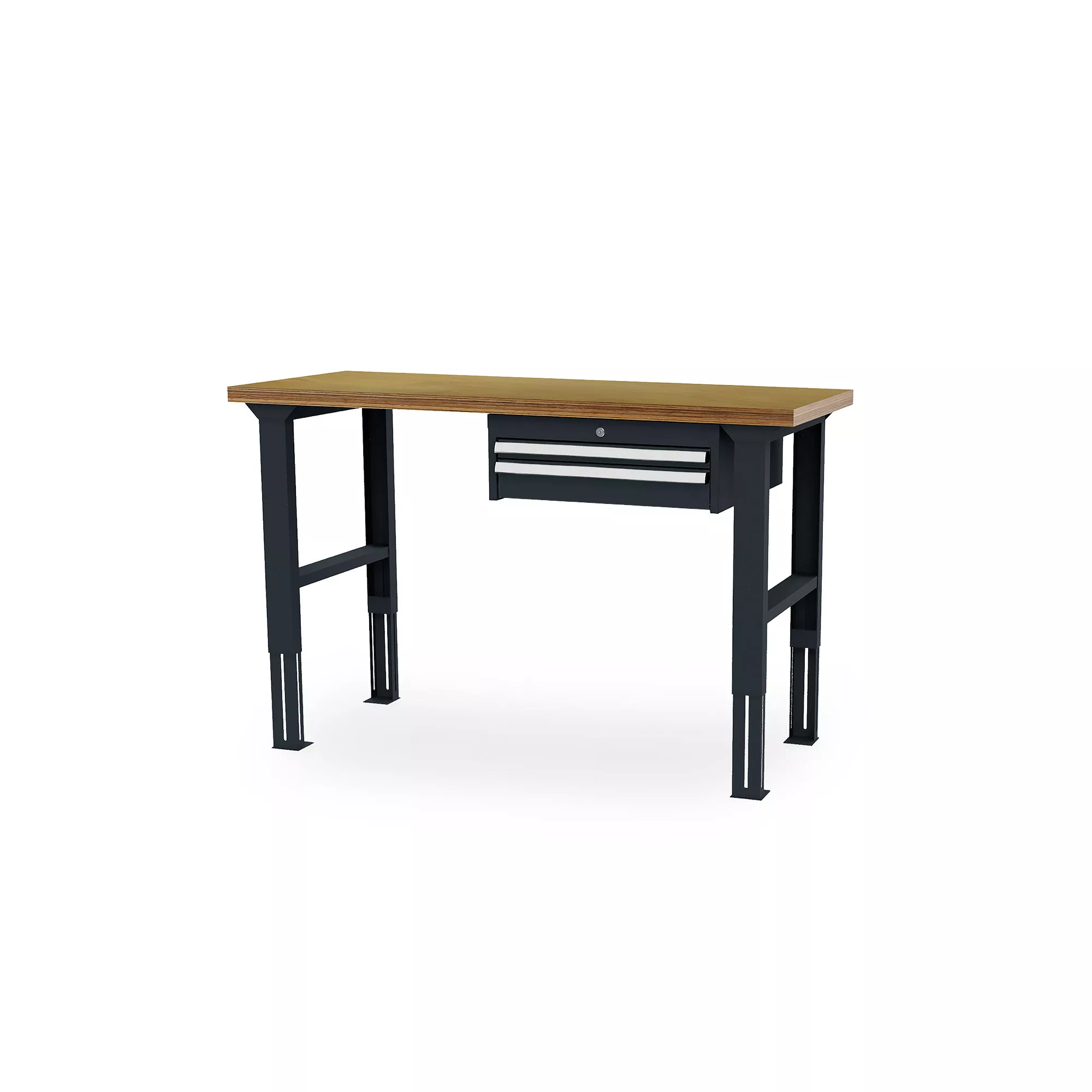Der Arbeitstisch besticht durch seine erstklassige Verarbeitung und das sehr gute Preis-Leistungs-Verhältnis. Dank der stabilen Buche-Multiplex-Platte können Sie sicher sein, dass der Tisch selbst den anspruchsvollsten Aufgaben standhält. Er ist zudem mit einem praktischen Unterhängeschrank auf der rechten Seite ausgestattet, der Ihnen mit zwei Schubladen in unterschiedlichen Höhen ausreichend Stauraum bietet. Die höhenverstellbaren Fußgestelle ermöglichen es Ihnen, die Arbeitshöhe individuell anzupassen und somit ergonomisch zu arbeiten.