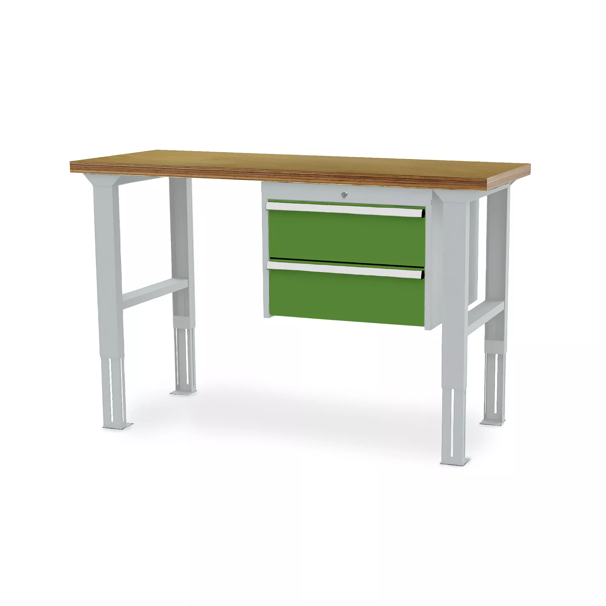 Der Arbeitstisch besticht durch seine erstklassige Verarbeitung und das sehr gute Preis-Leistungs-Verhältnis. Dank der stabilen Buche-Multiplex-Platte können Sie sicher sein, dass der Tisch selbst den anspruchsvollsten Aufgaben standhält. Er ist zudem mit einem praktischen Unterhängeschrank auf der rechten Seite ausgestattet, der Ihnen mit zwei Schubladen ausreichend Stauraum bietet. Die höhenverstellbaren Fußgestelle ermöglichen es Ihnen, die Arbeitshöhe individuell anzupassen und somit ergonomisch zu arbeiten.