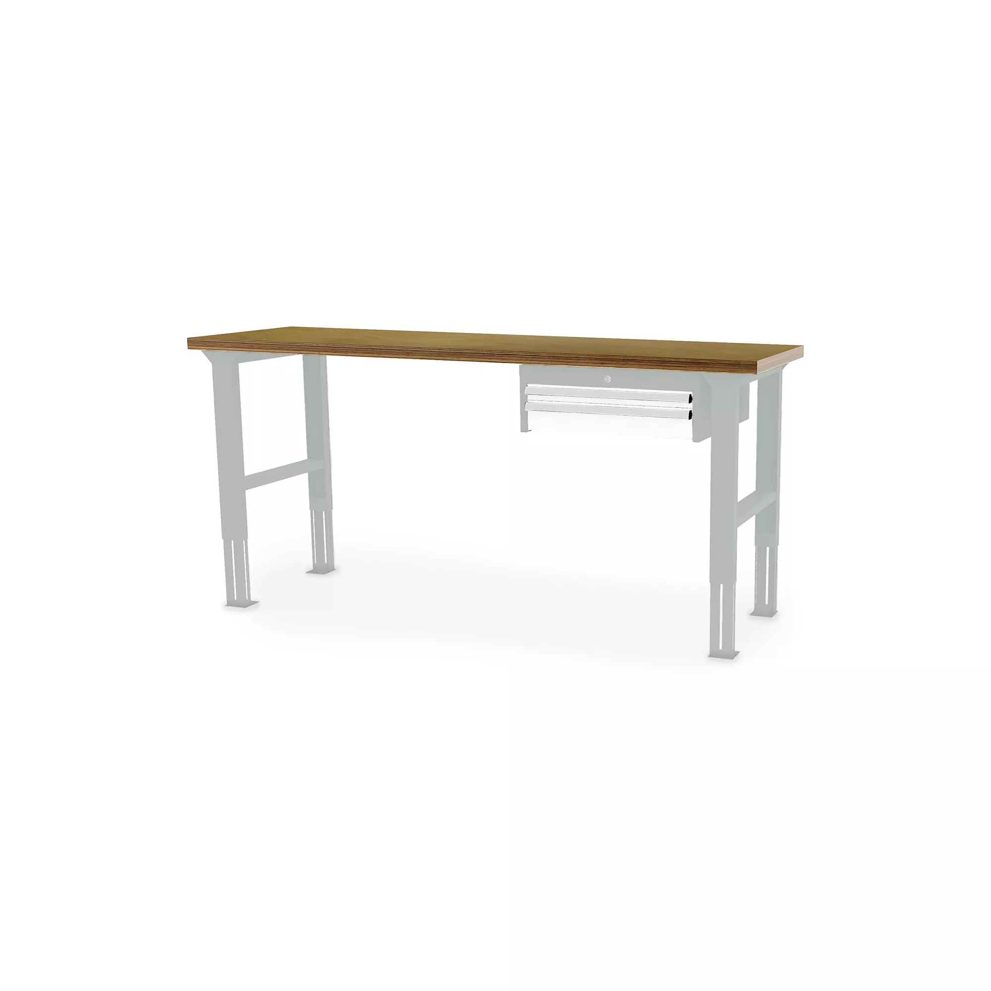 Der komfortable Arbeitstisch besticht durch seine exzellente Verarbeitung und das herausragende Preis-Leistungs-Verhältnis. Die zwei Meter lange massive Buche-Multiplex-Platte sorgt für eine langlebige und robuste Arbeitsfläche, die auch intensiver Nutzung standhält. Mit einem Unterhängeschrank auf der rechten Seite und zwei geräumigen Schubladen bietet der Tisch genügend Stauraum für Ihre Werkzeuge und Materialien. Die höhenverstellbaren Fußgestelle ermöglichen es Ihnen, die Arbeitshöhe individuell anzupassen und somit ergonomisch zu arbeiten.
