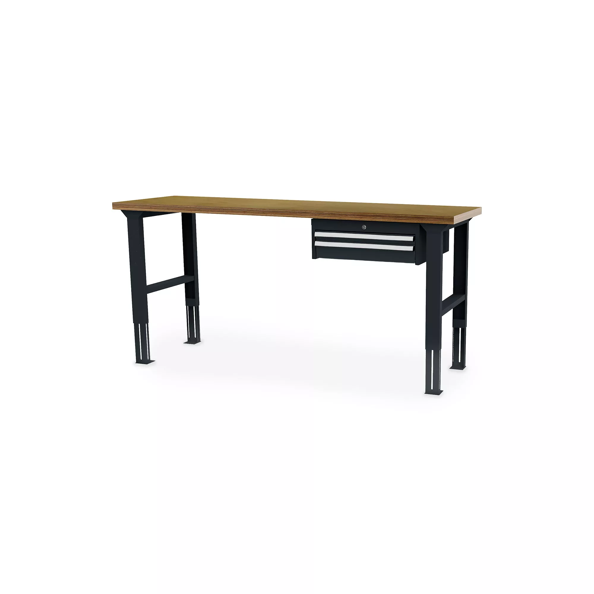 Der komfortable Arbeitstisch besticht durch seine exzellente Verarbeitung und das herausragende Preis-Leistungs-Verhältnis. Die zwei Meter lange massive Buche-Multiplex-Platte sorgt für eine langlebige und robuste Arbeitsfläche, die auch intensiver Nutzung standhält. Mit einem Unterhängeschrank auf der rechten Seite und zwei geräumigen Schubladen bietet der Tisch genügend Stauraum für Ihre Werkzeuge und Materialien. Die höhenverstellbaren Fußgestelle ermöglichen es Ihnen, die Arbeitshöhe individuell anzupassen und somit ergonomisch zu arbeiten.