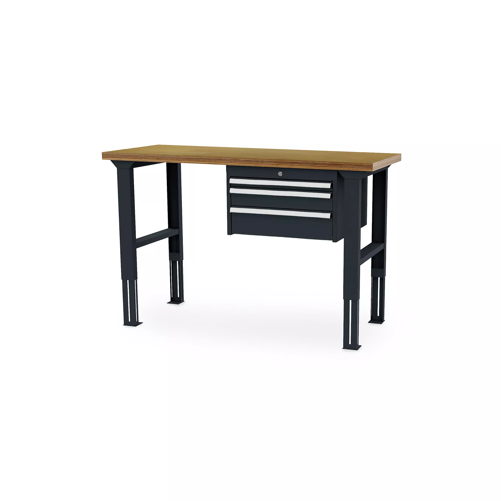 Der Arbeitstisch besticht durch seine erstklassige Verarbeitung und das sehr gute Preis-Leistungs-Verhältnis. Dank der stabilen Buche-Multiplex-Platte können Sie sicher sein, dass der Tisch selbst den anspruchsvollsten Aufgaben standhält. Er ist zudem mit einem praktischen Unterhängeschrank auf der rechten Seite ausgestattet, der Ihnen mit drei Schubladen in unterschiedlichen Höhen ausreichend Stauraum bietet. Die höhenverstellbaren Fußgestelle ermöglichen es Ihnen, die Arbeitshöhe individuell anzupassen und somit ergonomisch zu arbeiten.