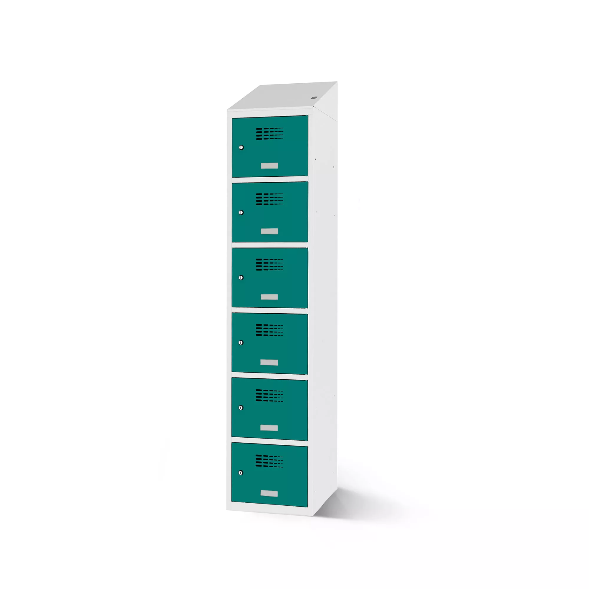 Aufgrund seiner Flexibilität ist er vielseitig einsetzbar in Schulen, Freizeiteinrichtungen und Unternehmen. Der Korpus ist aus stabilem, pulverbeschichtetem Stahlblech gefertigt. Abgerundete Kanten und glatt einliegende Türen unterstreichen das moderne Design des Fächerschranks. Für eine gute Luftzirkulation im Fachinneren sorgen die Lüftungslöcher in den Türen.