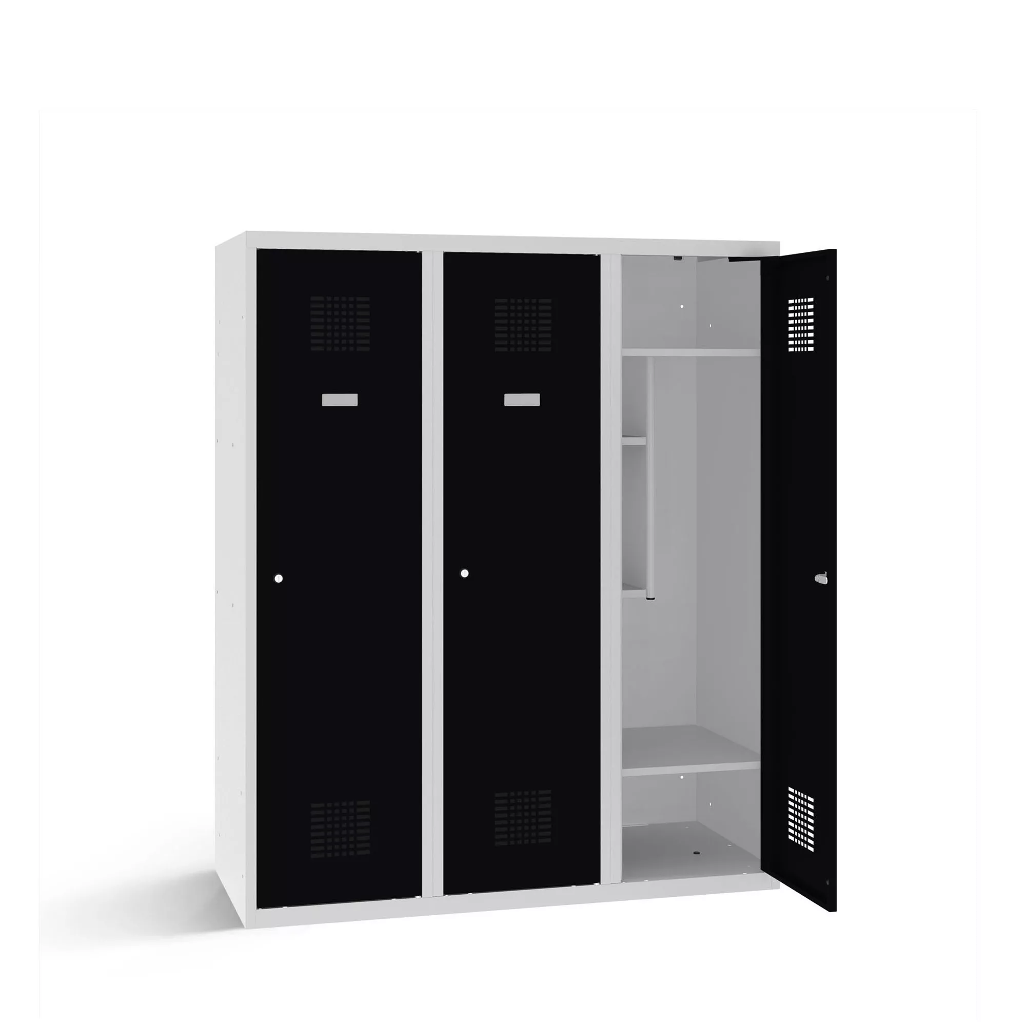 Der Kinderspind sorgt für eine sichere und komfortable Aufbewahrung von Taschen, Rucksäcken und Bekleidung in Kitas und Grundschulen. Dank seiner angepassten Höhe von 145 cm sind alle Fächer und Ablageböden bequem für Kinder erreichbar. Die clevere Einteilung der Abteile erlaubt eine ordentliche und gut sortierte Aufbewahrung.