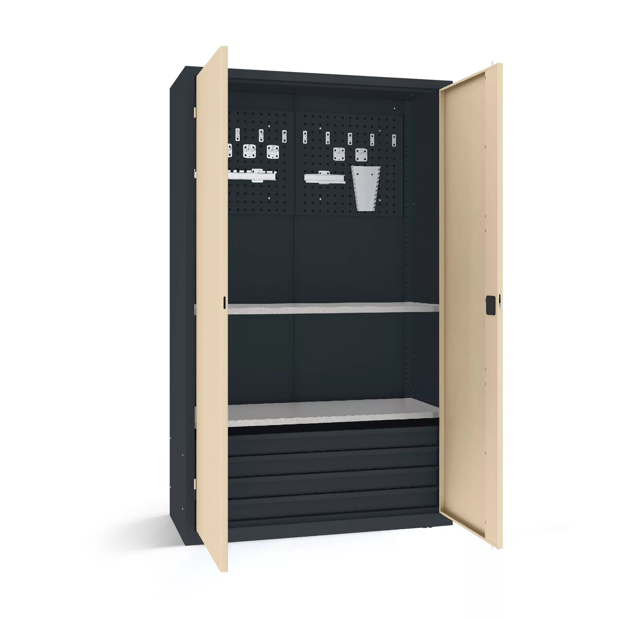 Schwerlast-Werkstattschrank mit Werkzeugtafel für eine griffbereite Lagerung von Arbeitsmaterial