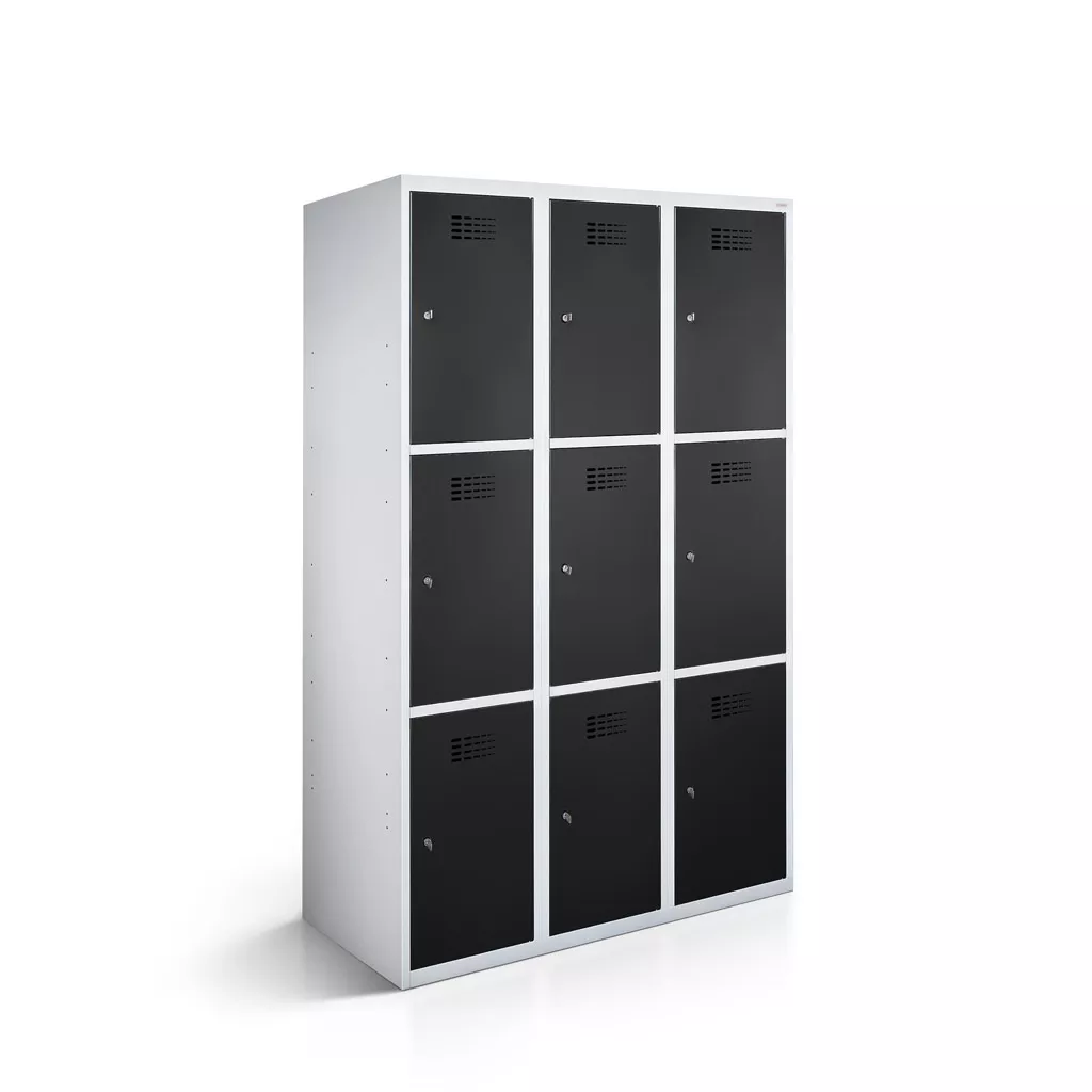 The locker cabinet from LOCKEEL®offers practical storage space for backpacks, bags, jackets and much more. This makes it versatile for use in schools, recreational facilities and businesses. The corpus is made of sturdy, powder-coated sheet steel. Rounded edges and smoothly fitted doors emphasize the modern design of the compartment locker. Ventilation holes in the doors ensure good air circulation inside the compartment.