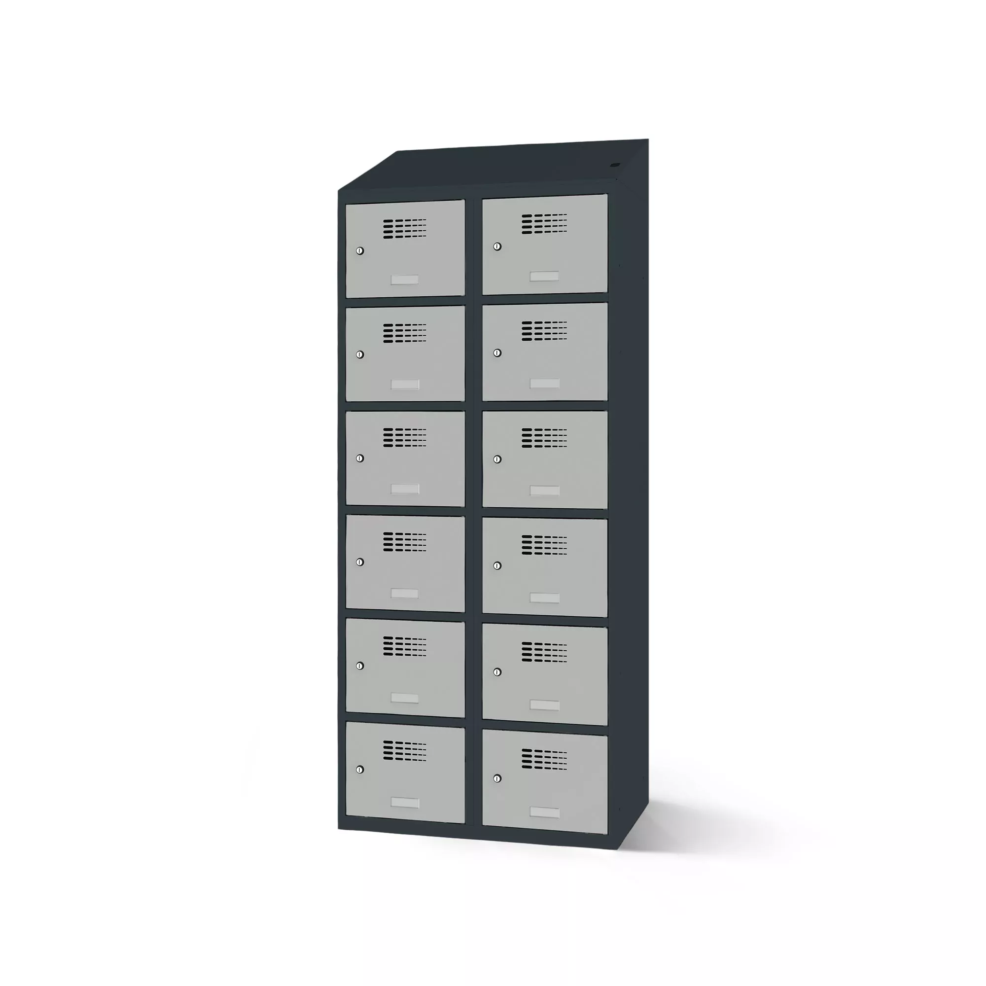 Its flexibility makes it versatile for use in schools, recreational facilities and businesses. The corpus is made of sturdy, powder-coated sheet steel. Rounded edges and smoothly recessed doors emphasize the modern design of the compartment cabinet. The ventilation holes in the doors ensure good air circulation inside the compartment.