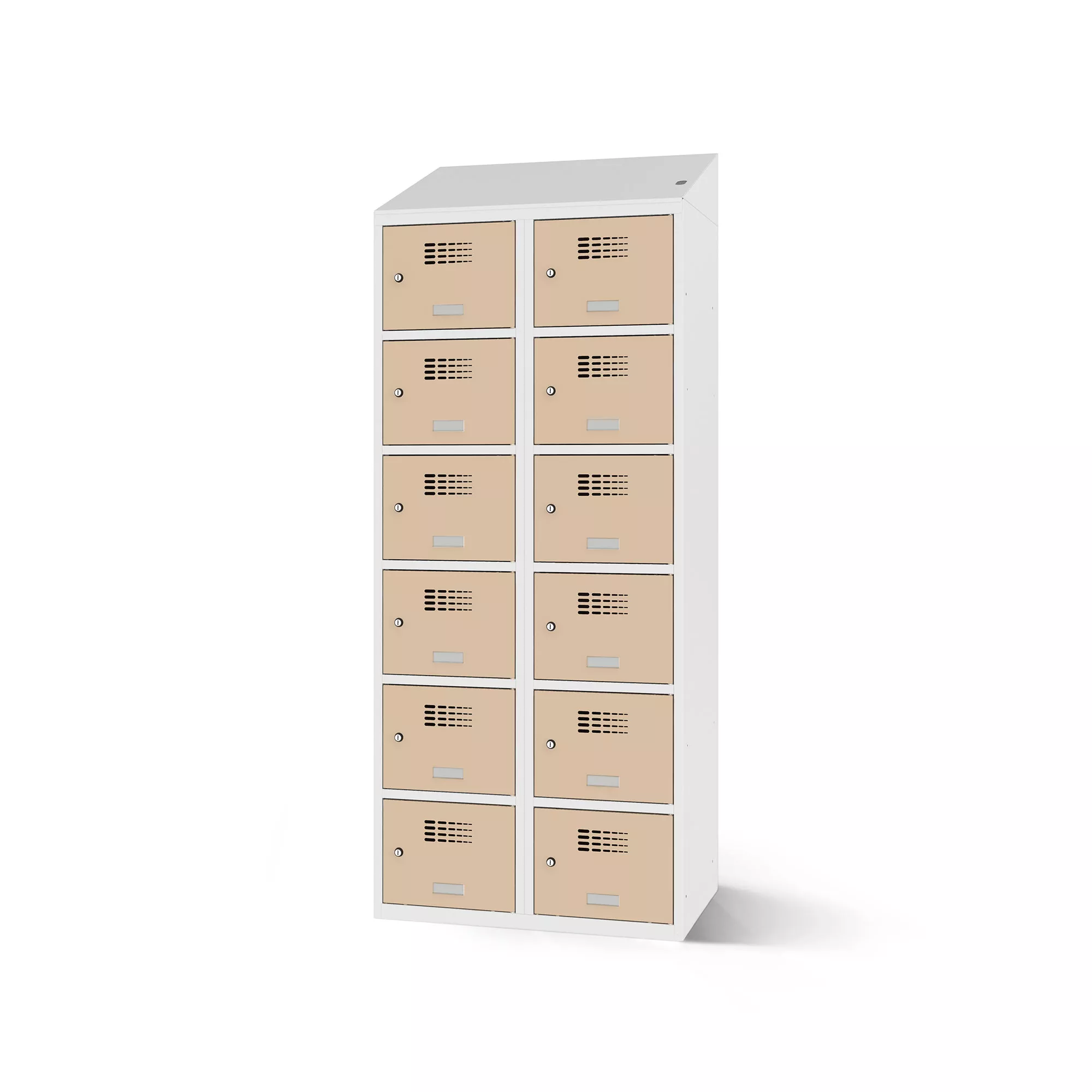 Its flexibility makes it versatile for use in schools, recreational facilities and businesses. The corpus is made of sturdy, powder-coated sheet steel. Rounded edges and smoothly recessed doors emphasize the modern design of the compartment cabinet. The ventilation holes in the doors ensure good air circulation inside the compartment.