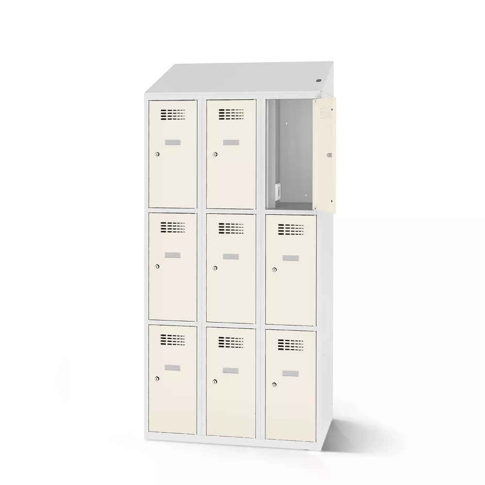 Its flexibility makes it versatile for use in schools, recreational facilities and businesses. The corpus is made of sturdy, powder-coated sheet steel. Rounded edges and smoothly recessed doors emphasize the modern design of the compartment cabinet. The ventilation holes in the doors ensure good air circulation inside the compartment.