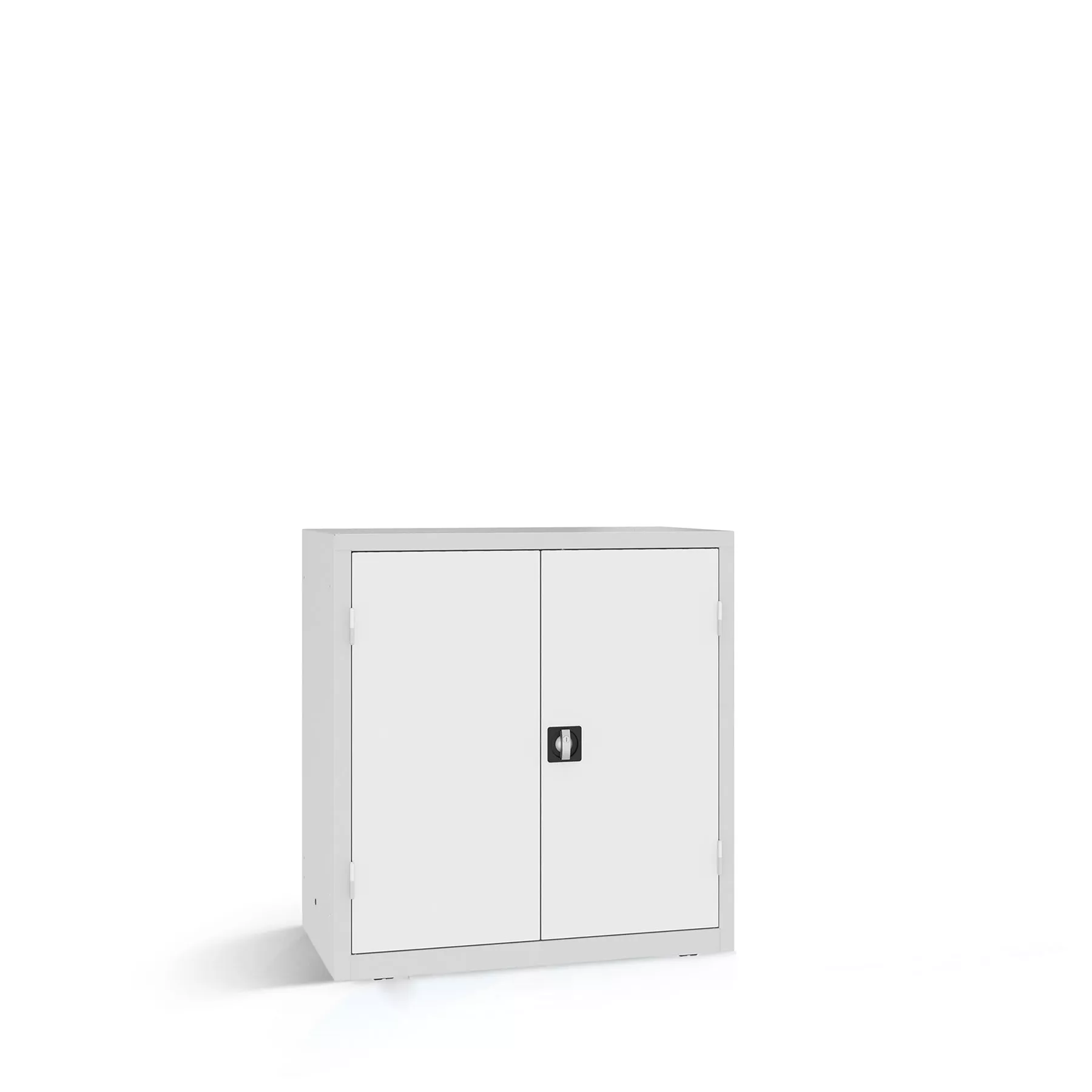 The leveling feet ensure a secure stand, easily compensating for minor unevenness in the floor. There are also holes in the rear panel for wall mounting. Thanks to the rotary handle with cylinder lock and the 3-point locking system, the steel cabinet guarantees reliable and secure storage.