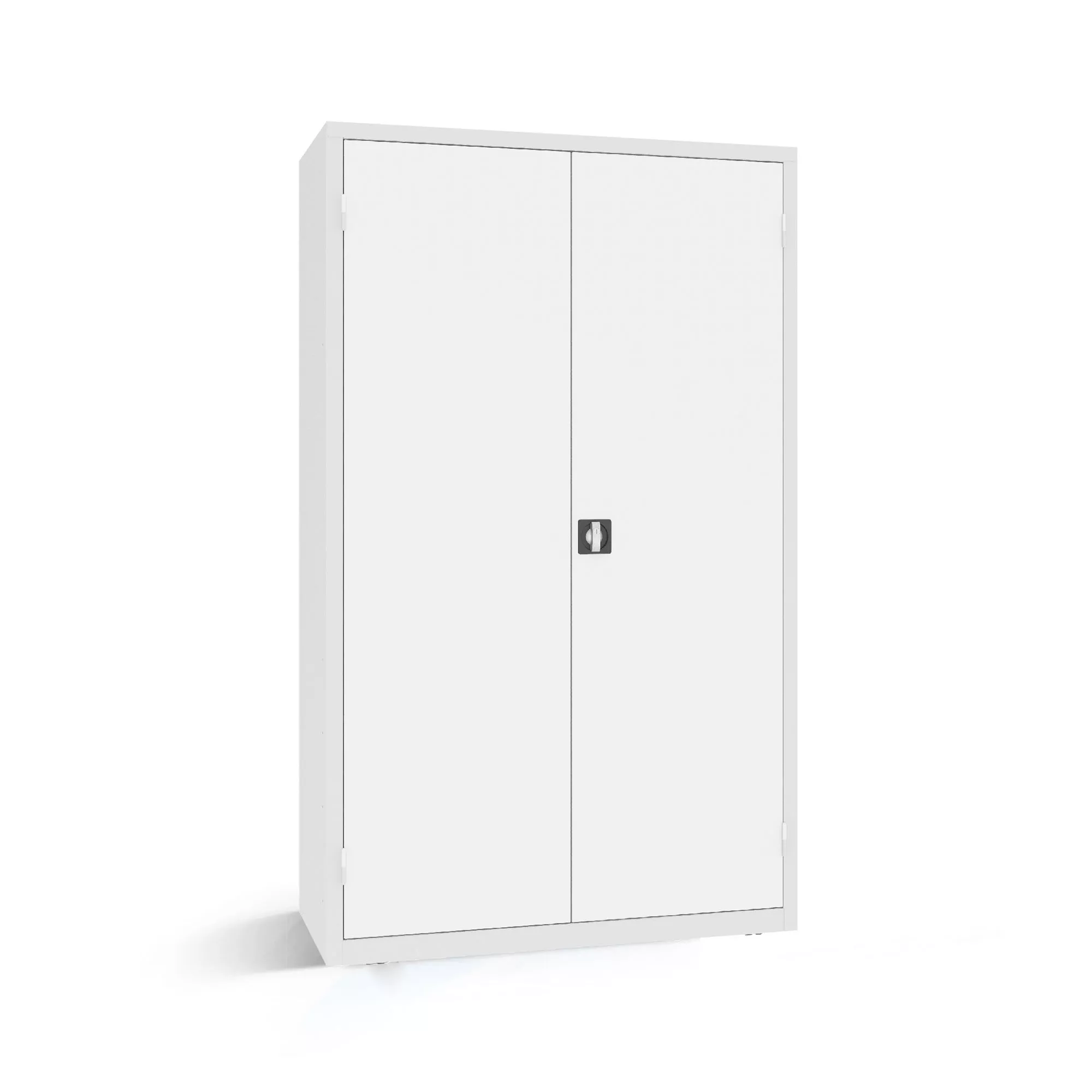The leveling feet ensure a secure stand, easily compensating for minor unevenness in the floor. There are also holes in the rear panel for wall mounting. Thanks to the rotary handle with cylinder lock and the 3-point locking system, the steel cabinet guarantees reliable and secure storage.