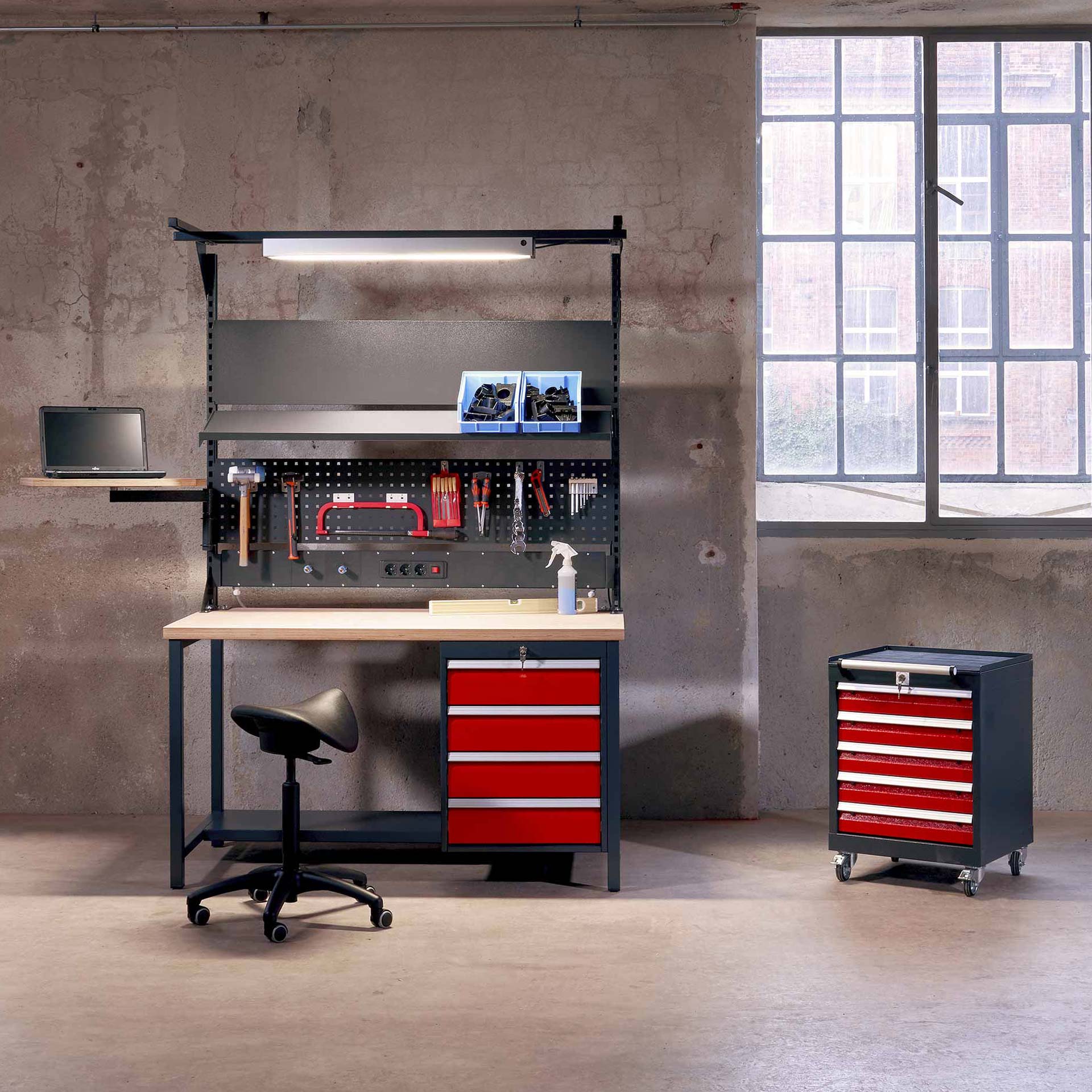 Optimize your workspace with LOCKEEL® professional workbenches. Robust and ergonomic, they include built-in drawers with ball bearings and a secure locking system for optimal comfort of use. Designed for the requirements of professionals, they combine reliability and practicality.
