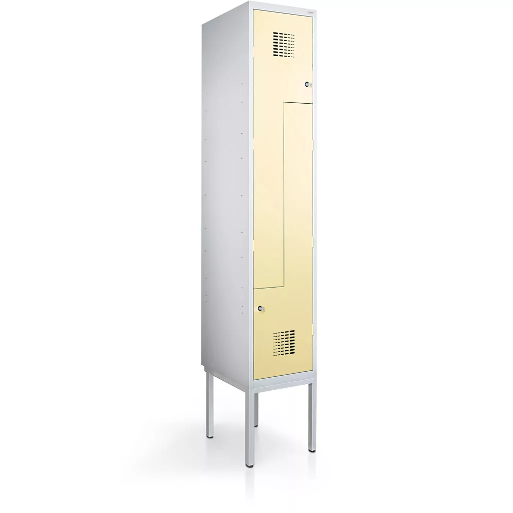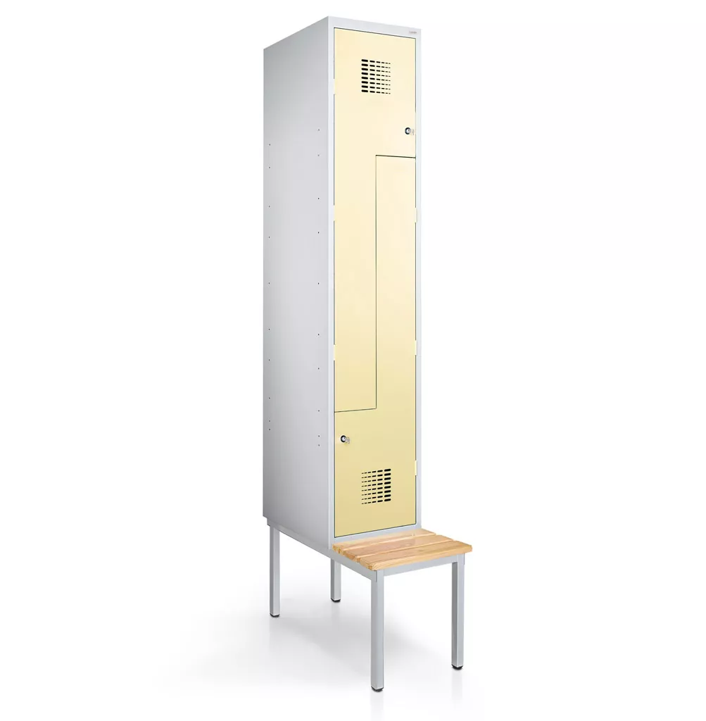 The L locker from LOCKEEL®is the ideal choice for locker rooms with limited space. Thanks to its L-shaped compartments, the locker offers sufficient storage space for long clothing as well as for shoes or bags. The locker comes standard with a sturdy shelf, a clothes rail and sliding hooks. The perforated locker doors provide good ventilation.