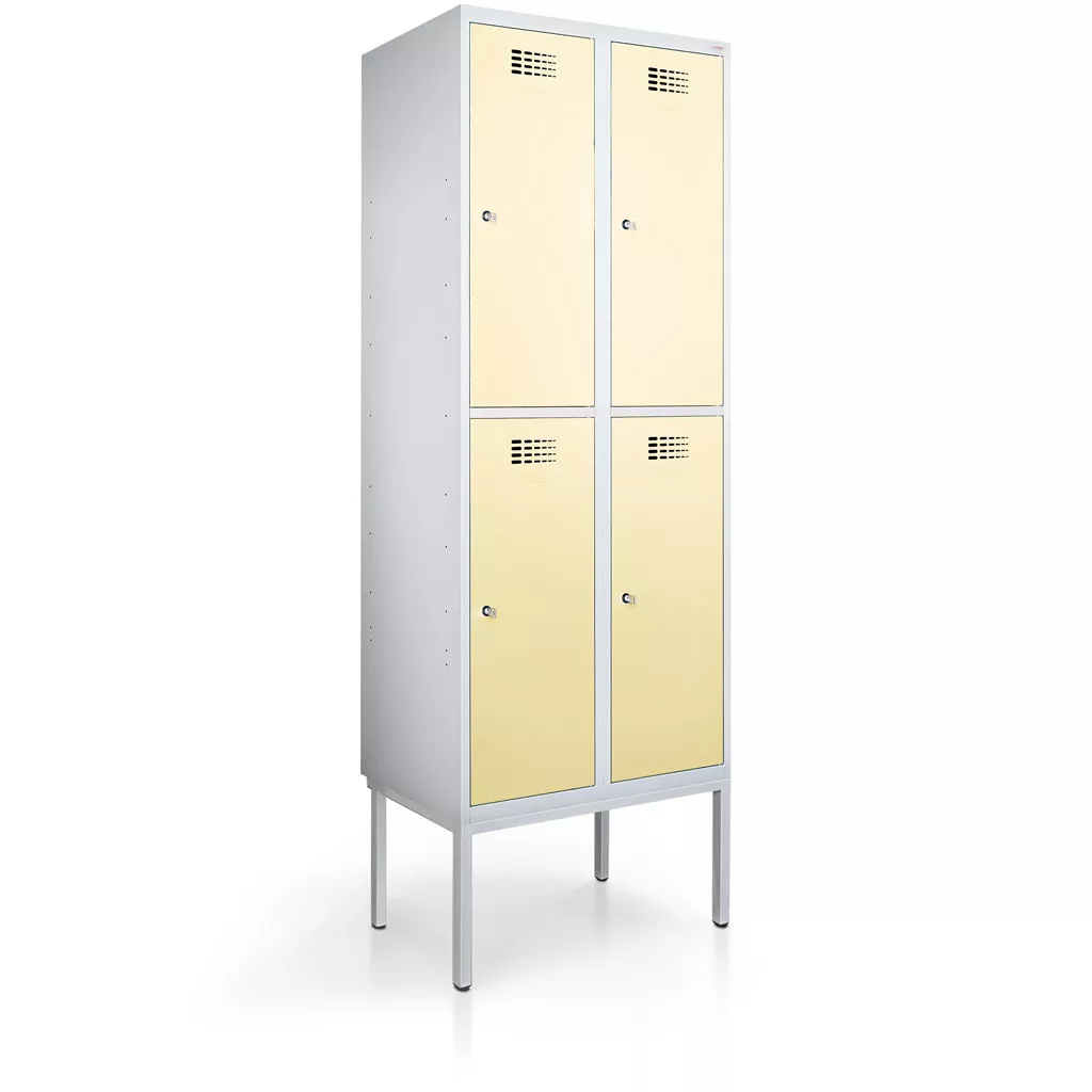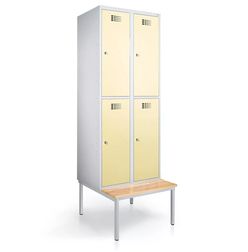 If you want as much storage space as possible for the wardrobe of your customers or employees despite limited space, then the coat locker from LOCKEEL®is the right choice for you. The two compartments, arranged one above the other, each have a sturdy clothes rail, which is equipped with two sliding hooks. The compartment shelves are smooth sweep out.