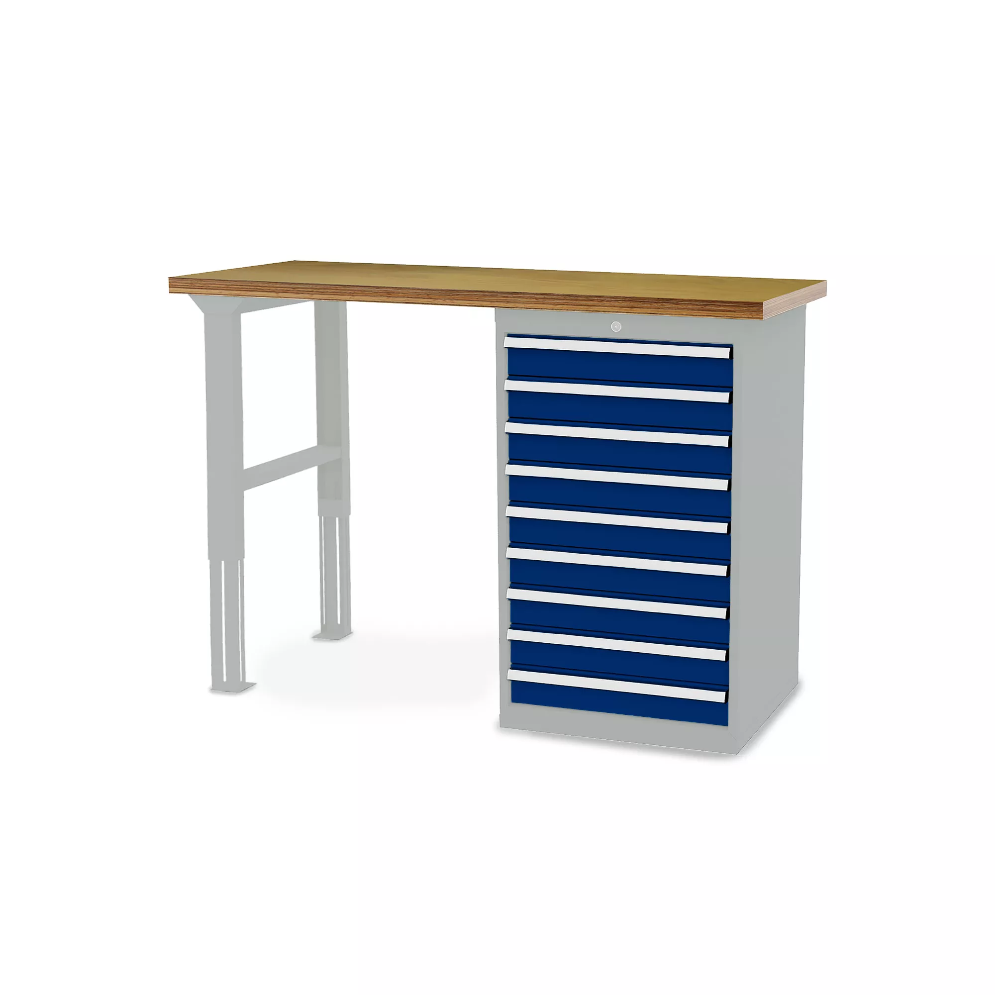 This professional workbench model impresses with its sturdy construction and spacious drawers, perfect for keeping your tools and materials well organised. Each drawer opens fully (full extension) and can hold up to 80 kg, allowing you to safely store heavy equipment. The beech plywood worktop provides a stable and durable work surface, ideal for precise and efficient work.