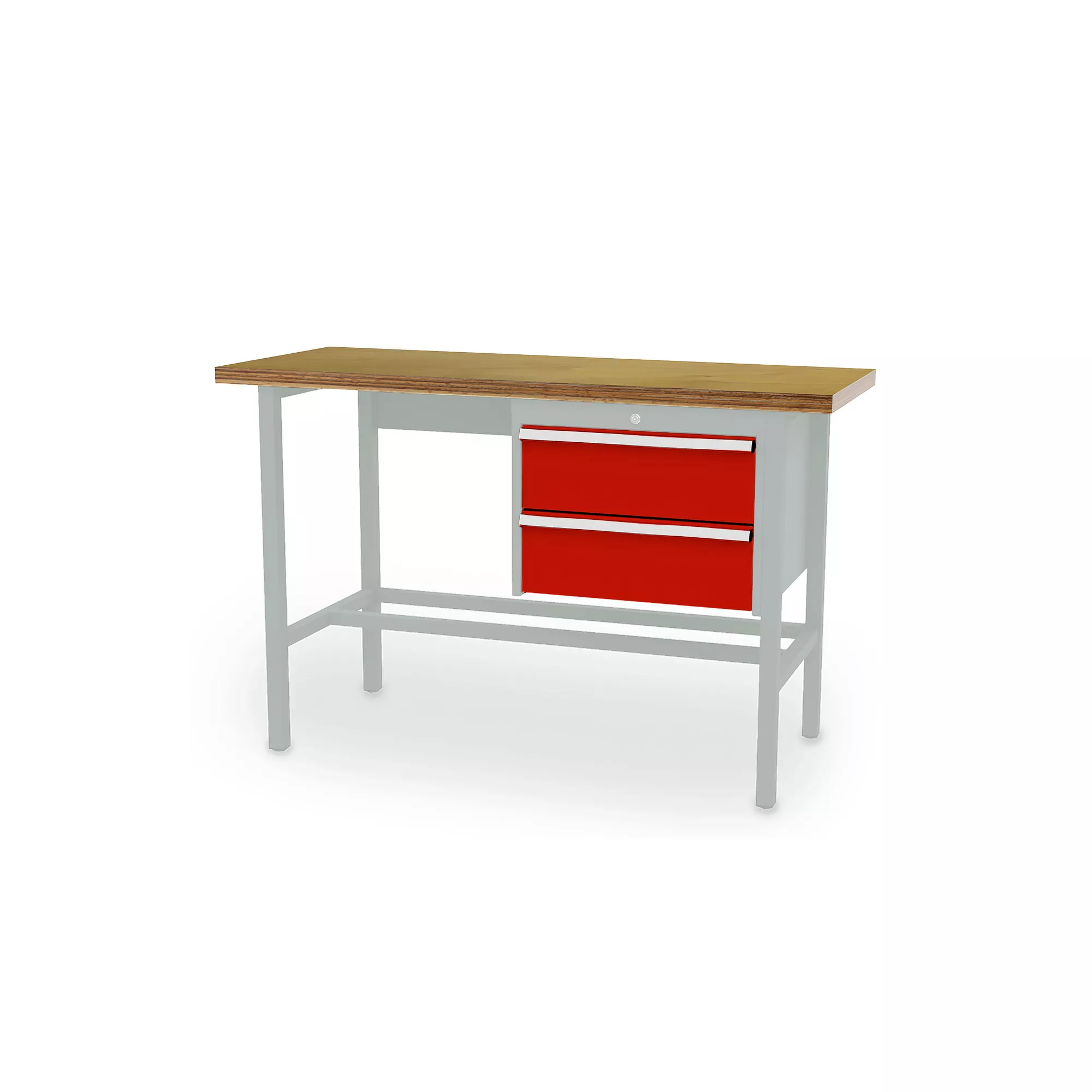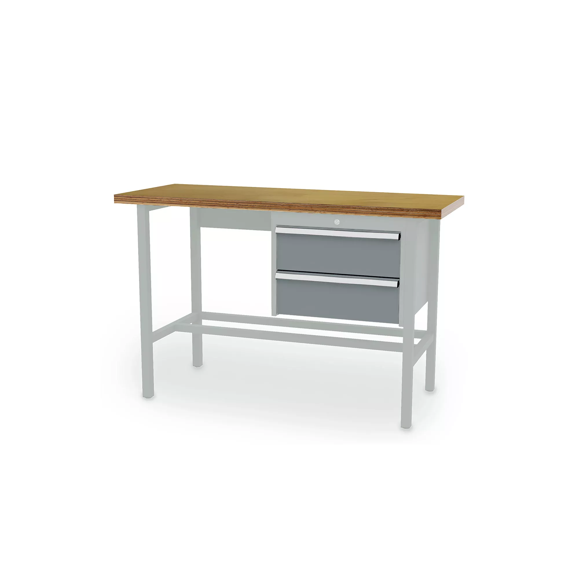 This workshop workbench model impresses with its impeccable workmanship and excellent value for money. The solid beech plywood worktop provides a stable, resistant and durable surface that is perfectly suited to intensive use. The suspended cabinet on the right-hand side offers generous storage space for your tools and supplies. It features fully extendable drawers for quick and easy access to your equipment. The powder-coated square steel tube frame ensures optimum stability, even under heavy loads.