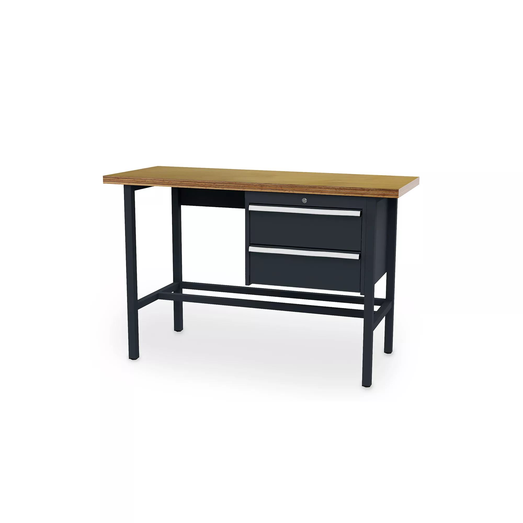 This workshop workbench model impresses with its impeccable workmanship and excellent value for money. The solid beech plywood worktop provides a stable, resistant and durable surface that is perfectly suited to intensive use. The suspended cabinet on the right-hand side offers generous storage space for your tools and supplies. It features fully extendable drawers for quick and easy access to your equipment. The powder-coated square steel tube frame ensures optimum stability, even under heavy loads.