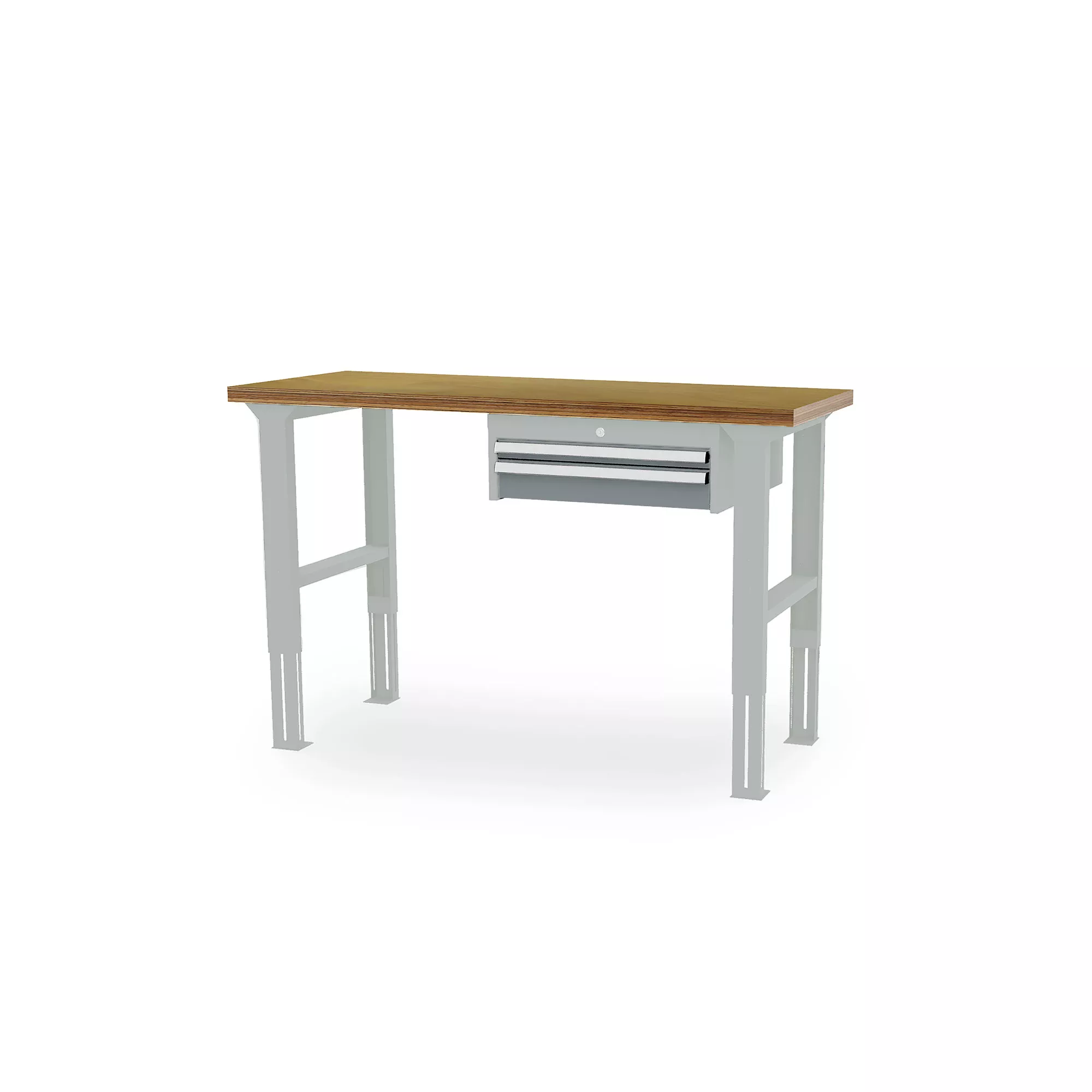 Designed for intensive and comfortable use, this workshop workbench impresses with its high-quality workmanship and excellent value for money. Its solid beech plywood worktop provides a sturdy and durable work surface that is perfectly suited to demanding tasks. Equipped with a suspended cabinet on the right-hand side, it includes practical storage space with two fully extendable drawers to keep your tools and materials within easy reach. Its height-adjustable base allows you to adjust the working position to suit your needs, for everyday ergonomic comfort.