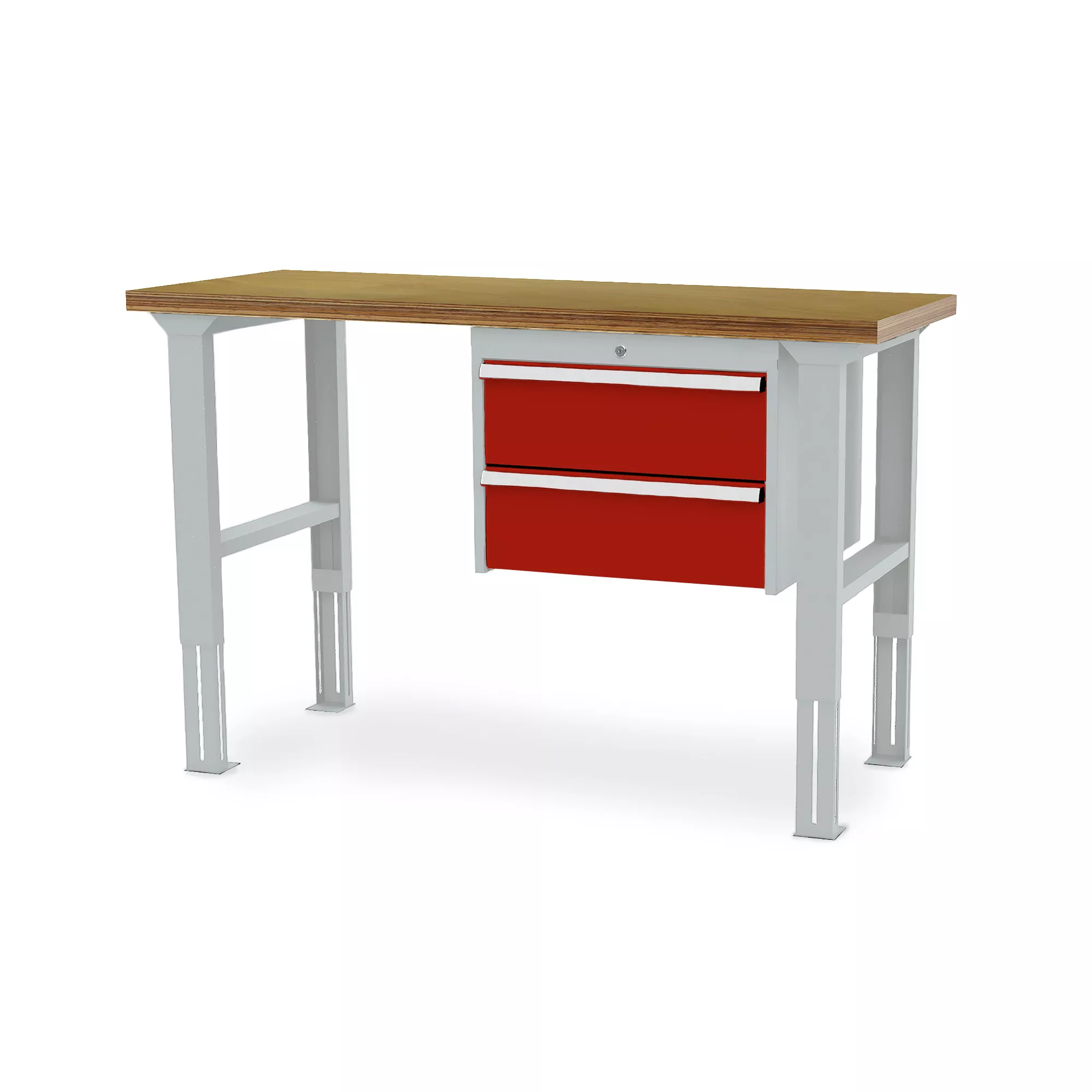 Designed for intensive and comfortable use, this workshop workbench impresses with its high-quality workmanship and excellent value for money. Its solid beech plywood worktop provides a sturdy and durable work surface that is perfectly suited to demanding tasks. Equipped with a suspended cabinet on the right-hand side, it includes practical storage space with two fully extendable drawers to keep your tools and materials within easy reach. Its height-adjustable base allows you to adjust the working position to suit your needs, for everyday ergonomic comfort.