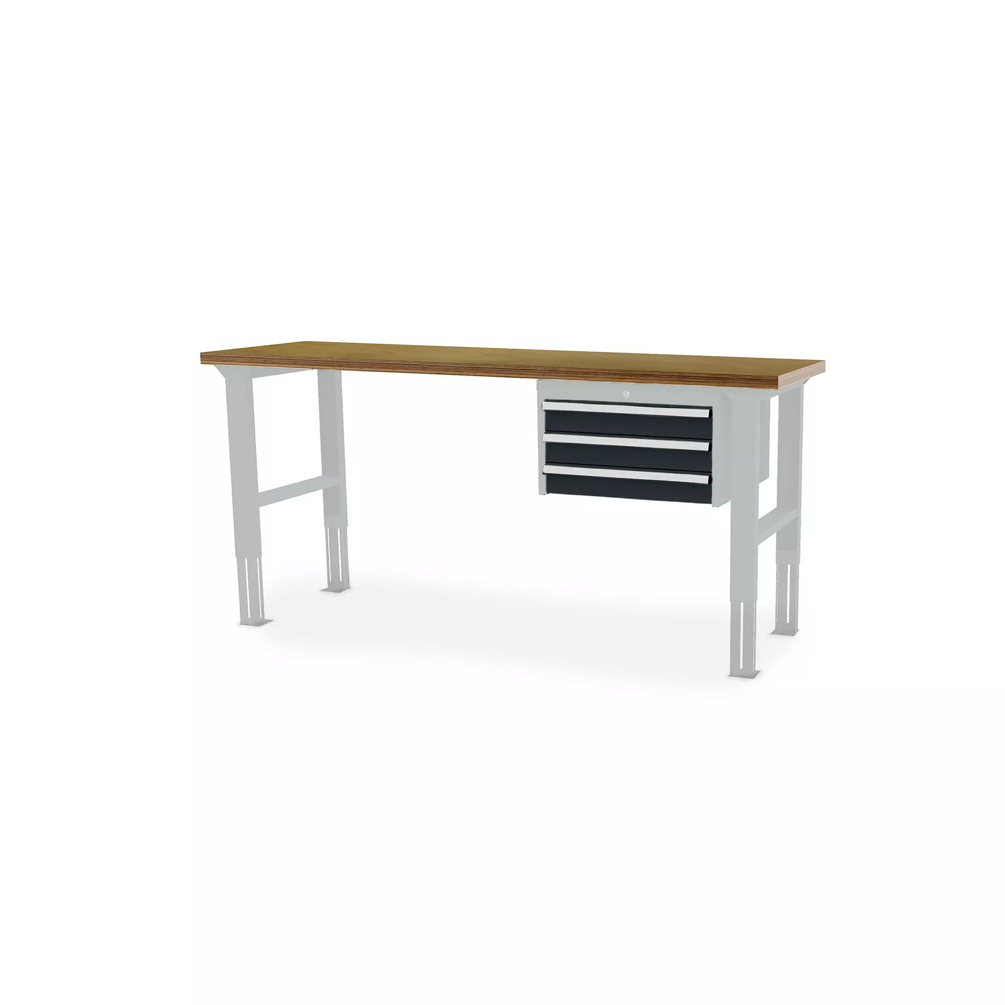 Designed for intensive and comfortable use, this workshop workbench impresses with its high-quality workmanship and excellent value for money. Its solid beech plywood worktop provides a sturdy and durable work surface that is perfectly suited to demanding tasks. Equipped with a suspended cabinet on the right-hand side, it includes practical storage space with three fully extendable drawers to keep your tools and materials within easy reach. Its height-adjustable base allows you to adjust the working position to suit your needs, for everyday ergonomic comfort.