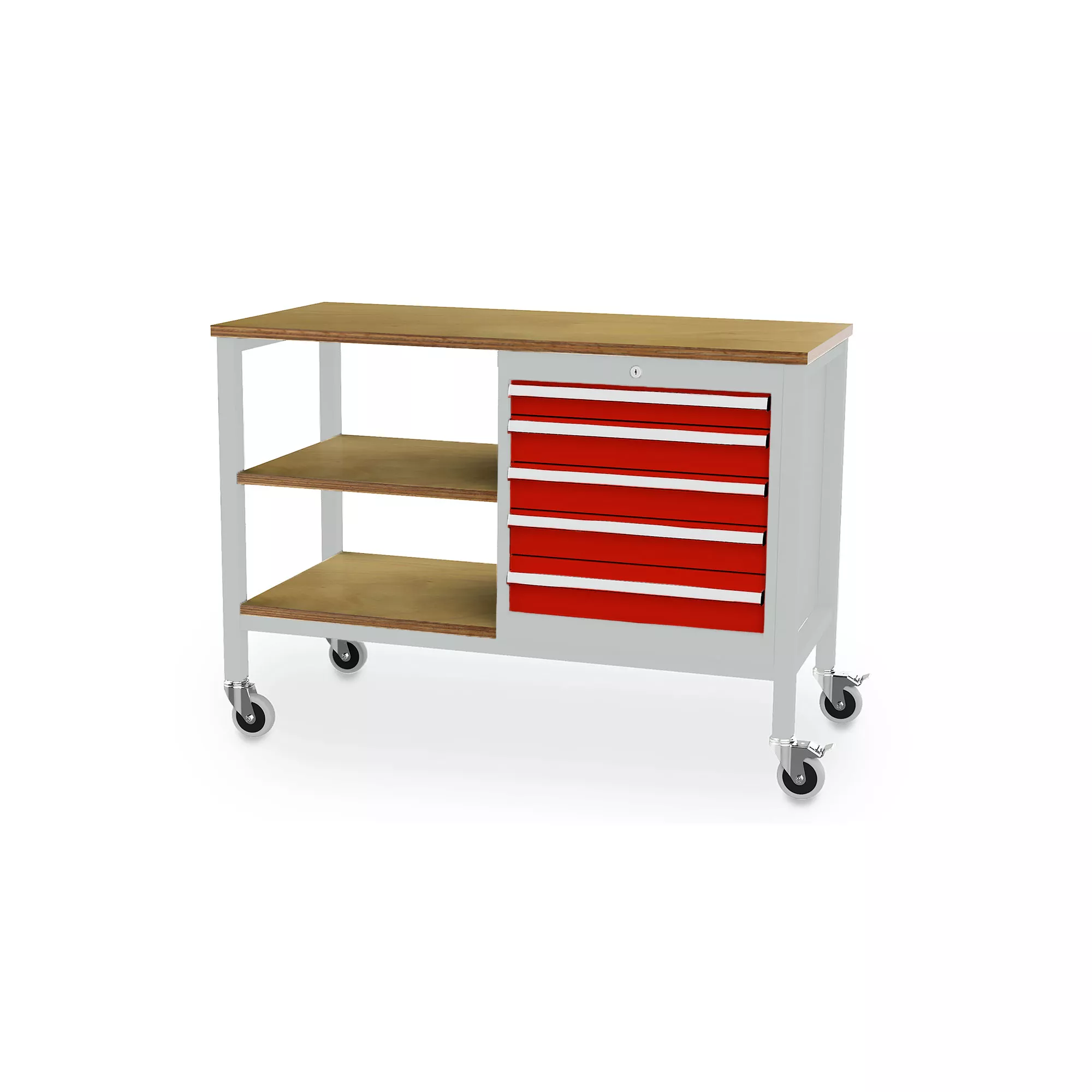 Établi mobile - 2 étagères, 5 tiroirs - 1300 x 600 x 960 mm (L x P x H)