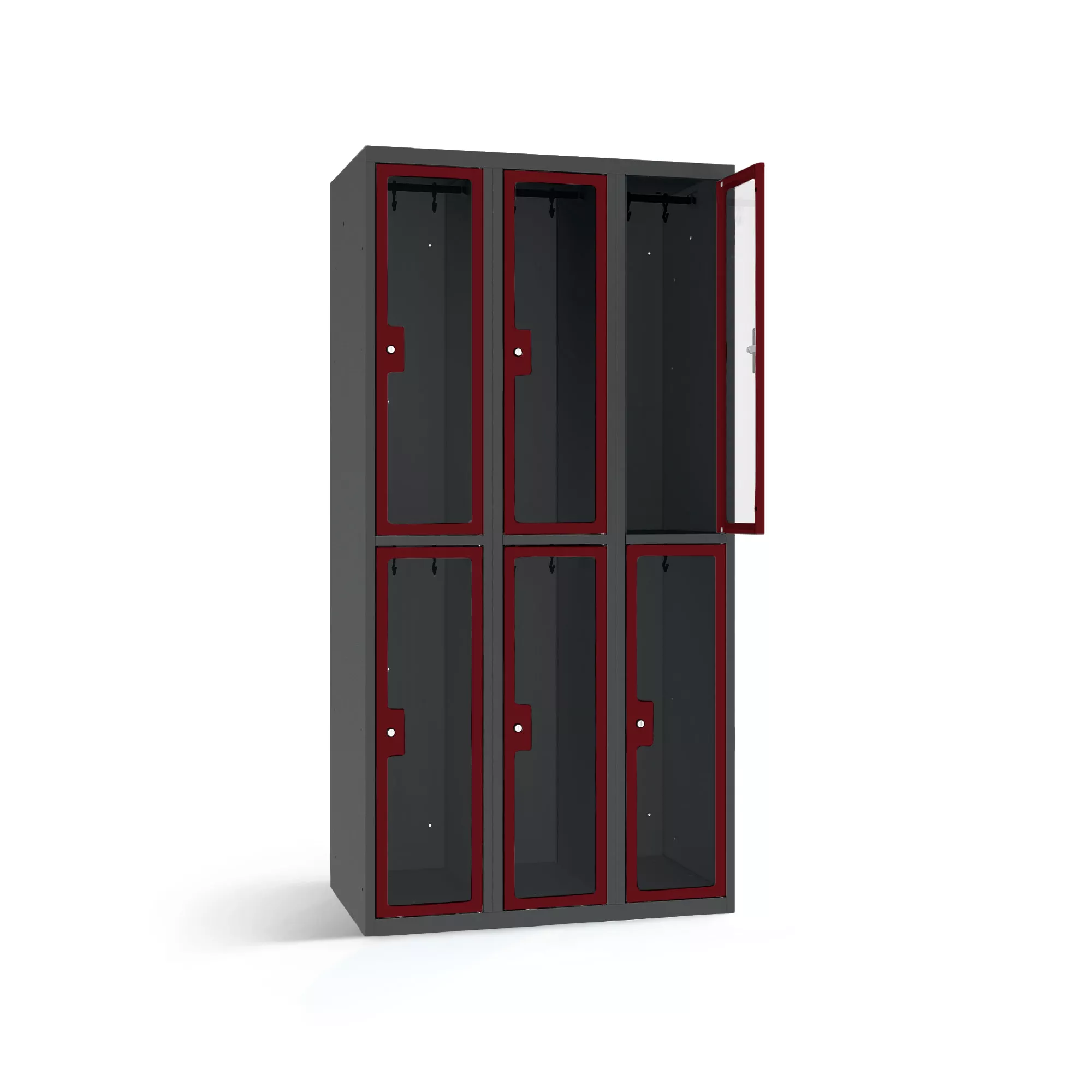 Vestiaire métallique 6 portes en plexiglas - 90 cm de largeur